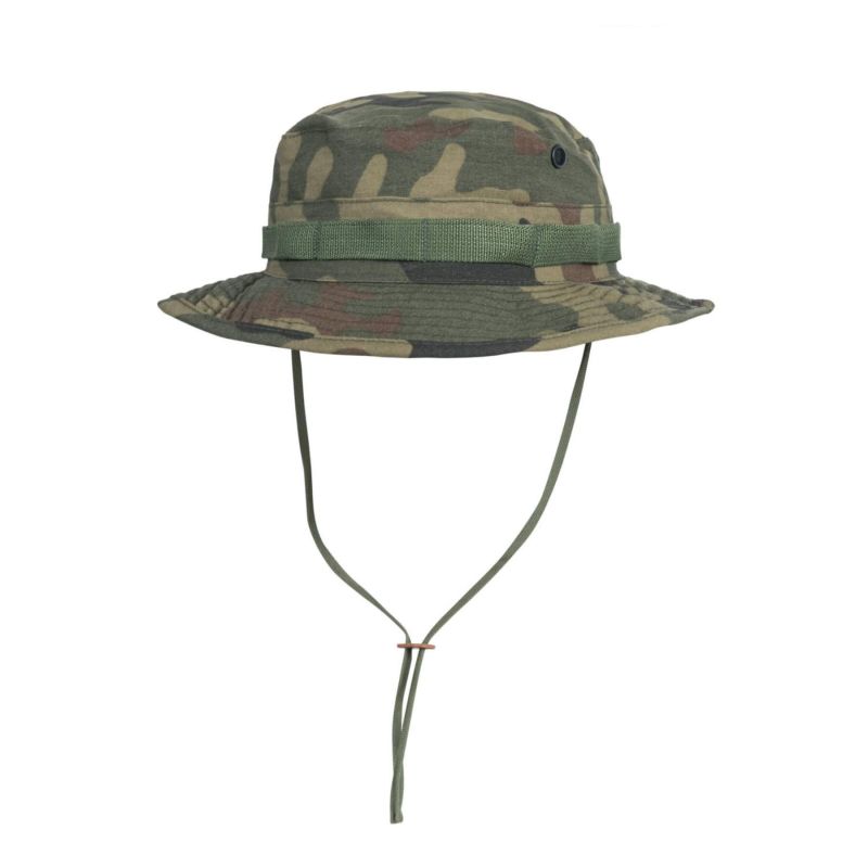 Военная шляпа характерного дизайна с узкими и регулируемыми полями в британском /австралийском стиле. Окружность регулируется в соответствии с размером головы. Традиционные металлические вентиляционные отверстия были заменены скрытыми сетчатыми туннелями (по бокам и сверху), улучшающими циркуляцию воздуха. Защитная лента повышает комфорт и предотвращает скопление пота на лбу. Предназначена в основном для лесозаготовок. Обеспечивает эффективную маскировку головы.