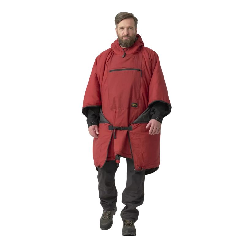 Самое очевидное и простое применение Swagman Roll® — в качестве пончо. На талии есть эластичные ленты, которые, будучи застегнутыми, плотно прилегают к телу, напоминая импровизированную куртку-анорак с большим передним карманом. Оно защищает от холода благодаря современной изоляции Climashield® Apex™ весом 67 г/м², которая сохраняет тепло даже во влажном состоянии. В сочетании с нашим пончо модели US Swagman образует двухслойную конструкцию: внутренний слой обеспечивает тепло, а внешний — защиту от дождя.