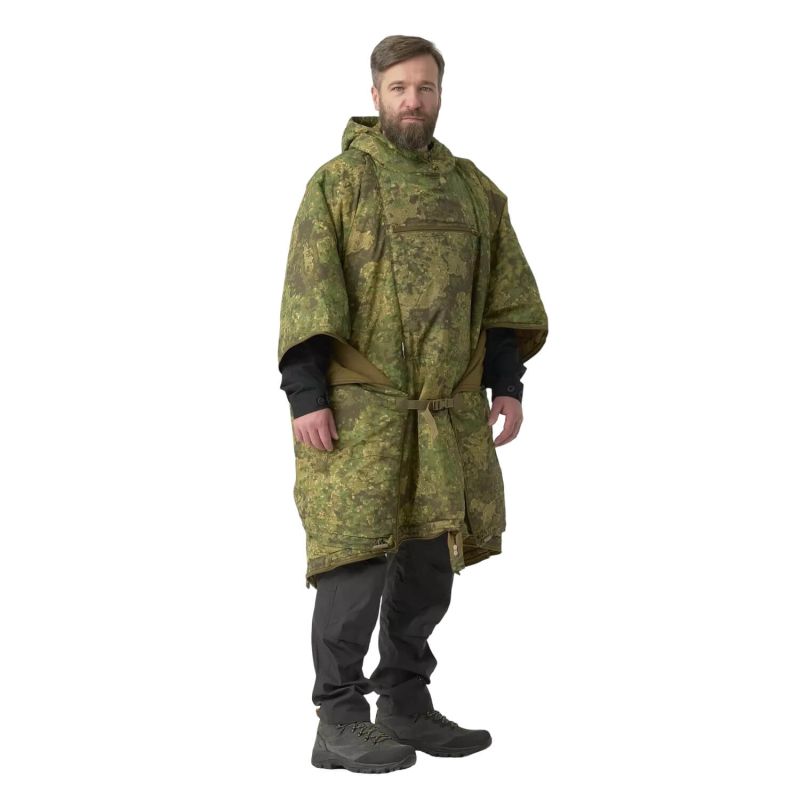 Самое очевидное и простое применение Swagman Roll® — в качестве пончо. На талии есть эластичные ленты, которые, будучи застегнутыми, плотно прилегают к телу, напоминая импровизированную куртку-анорак с большим передним карманом. Оно защищает от холода благодаря современной изоляции Climashield® Apex™ весом 67 г/м², которая сохраняет тепло даже во влажном состоянии. В сочетании с нашим пончо модели US Swagman образует двухслойную конструкцию: внутренний слой обеспечивает тепло, а внешний — защиту от дождя.